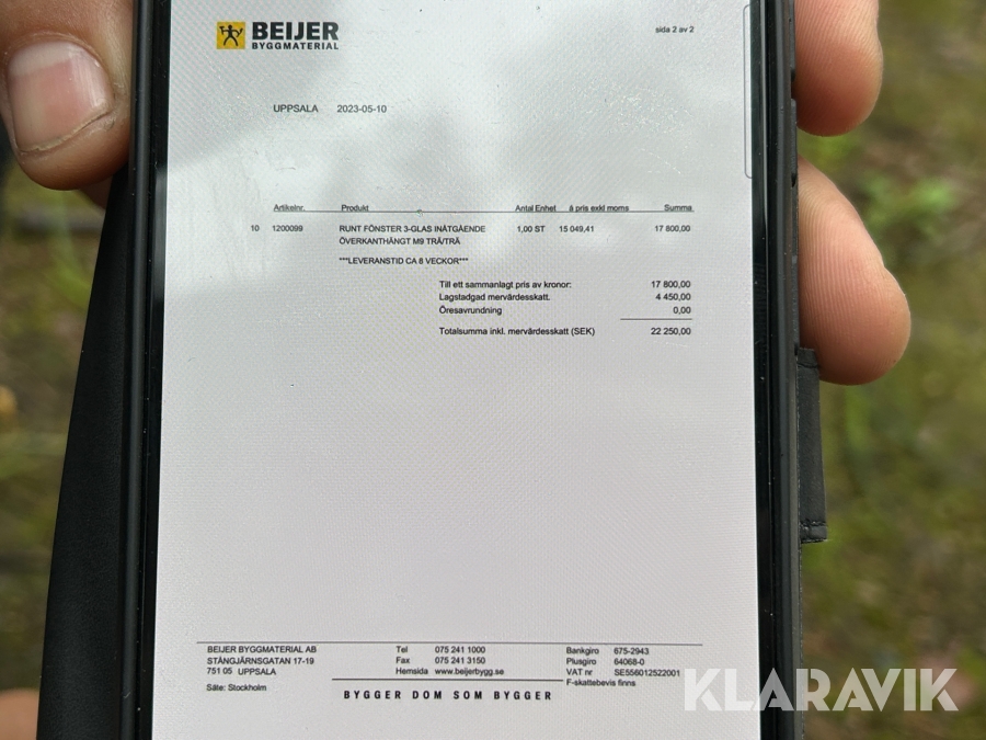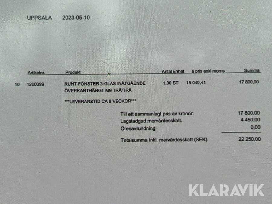 Du som köpare är skyldig att kontrollera objektet vid hämtning. Skiljer sig något avsevärt jämfört med informationen på klaravik.se? Kontakta då Klaravik innan du tar objektet från platsen. Läs fullständiga köpvillkor.