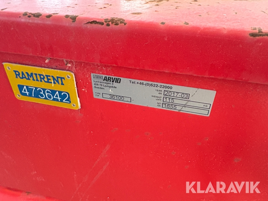 Pga platsbrist är det viktigt att du som köpare hämtar inom 12 dagar från auktionsavslut. Vid frågor om frakt kontakta trade@ramirent.se.
