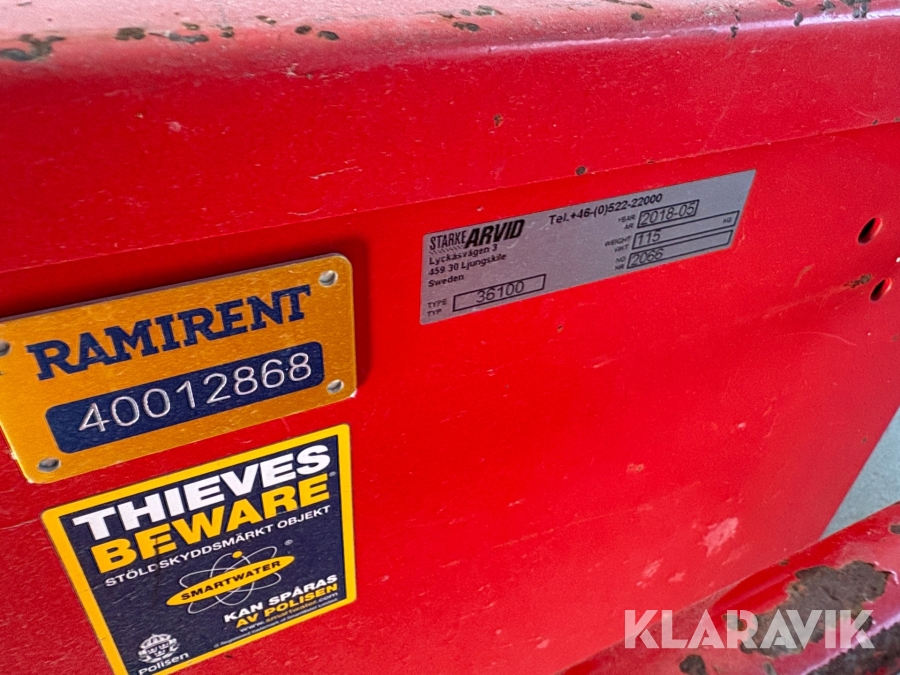 Pga platsbrist är det viktigt att du som köpare hämtar inom 12 dagar från auktionsavslut. Vid frågor om frakt kontakta trade@ramirent.se.