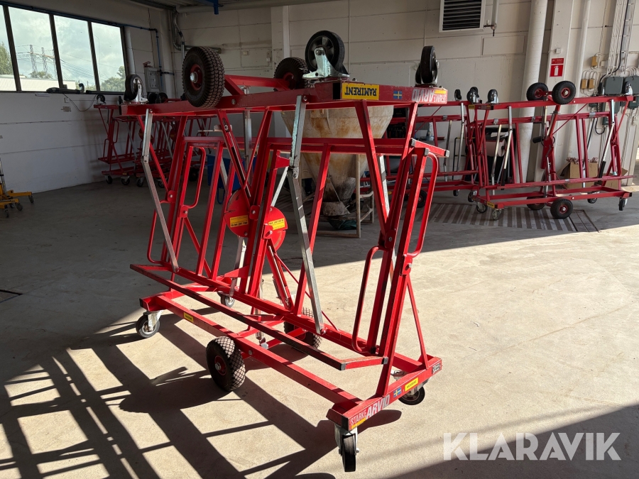 Skivvagnens funktion är att kunna förflytta gipsmaterial och skivor på ett enkelt och smidigt sätt från gipsbockar till monteringsplatsen. Tack vare dess smarta konstruktion kan du även nyttja skivvagnen för att skära till och anpassa ditt gipsmaterial direkt på plats, innan det ska vidare för montering.
