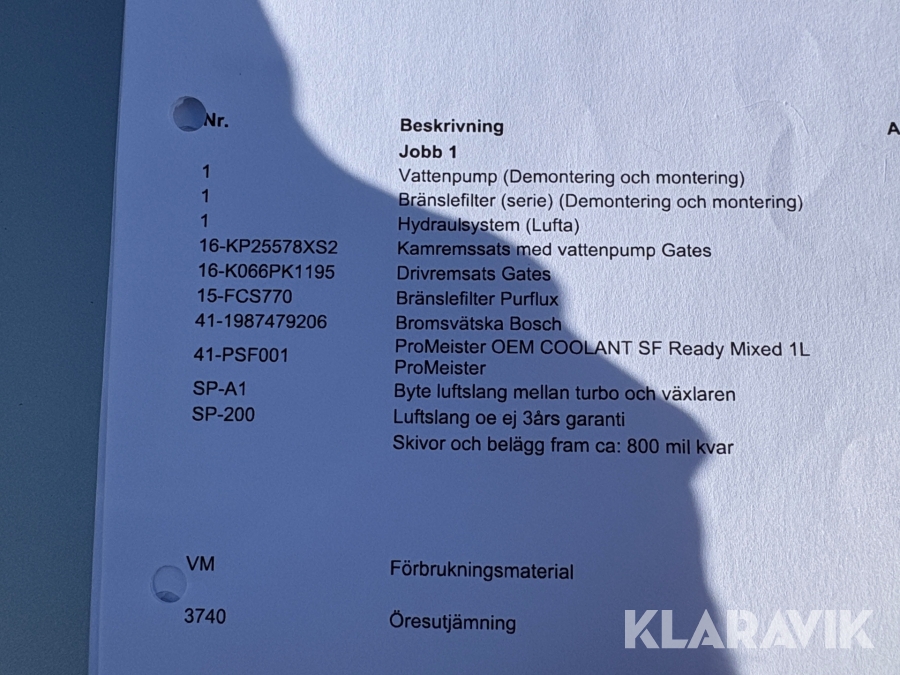 • Serie/chassinummer framgår
