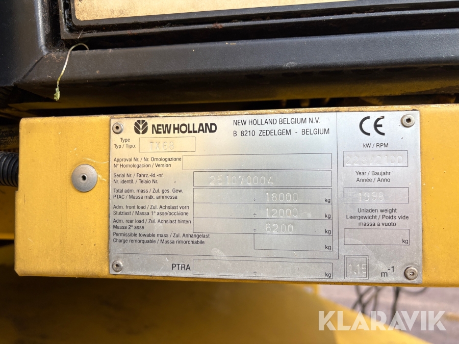 Skördetröska New Holland TX68 Plus med skärbordsvagn