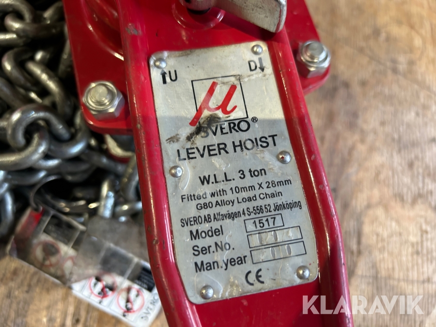 Kedjeblock med spak Svero 1517 3 ton
