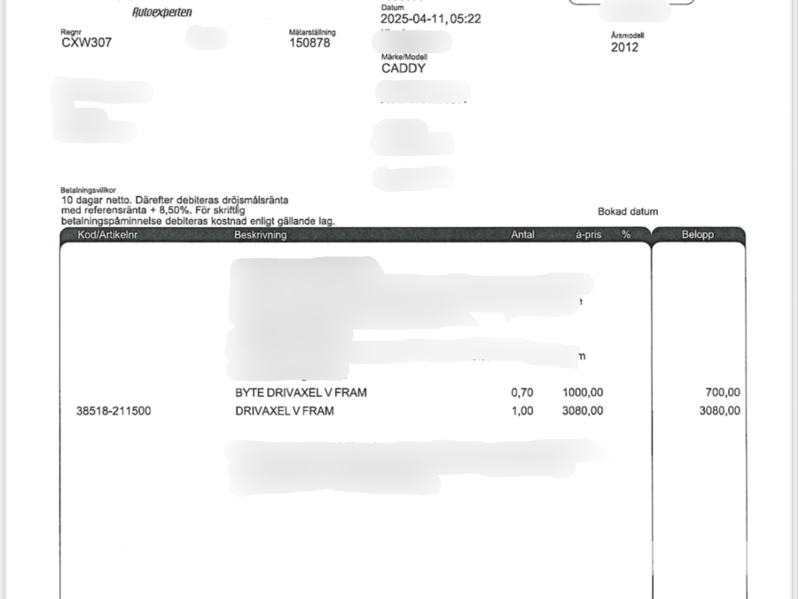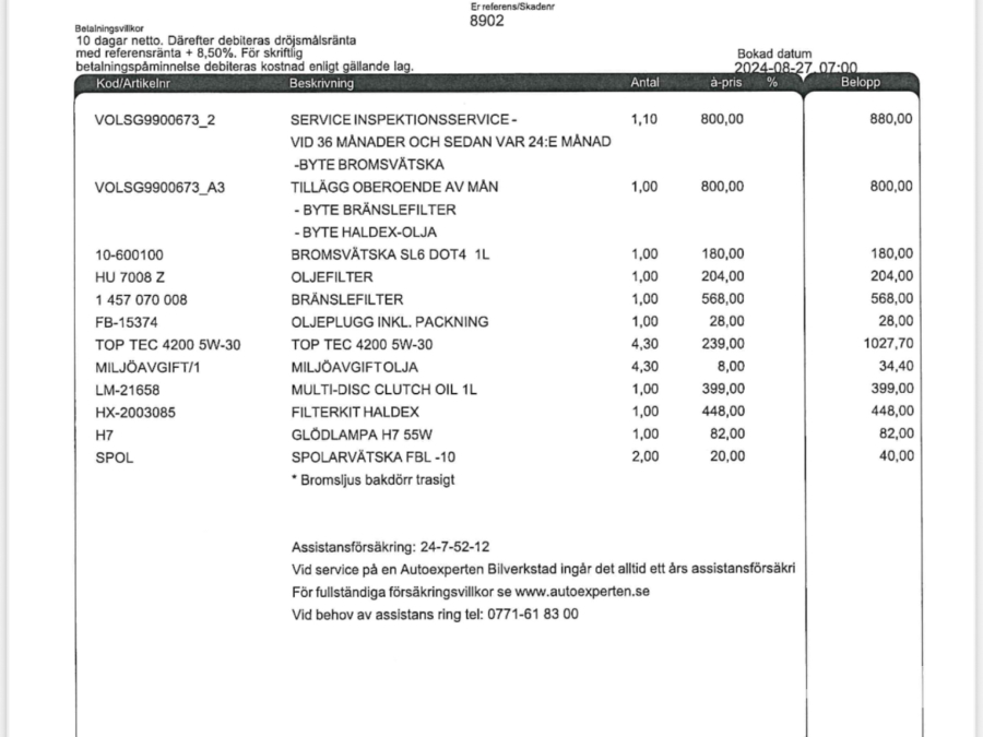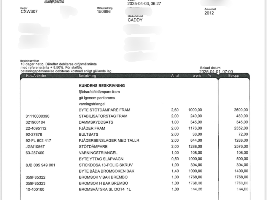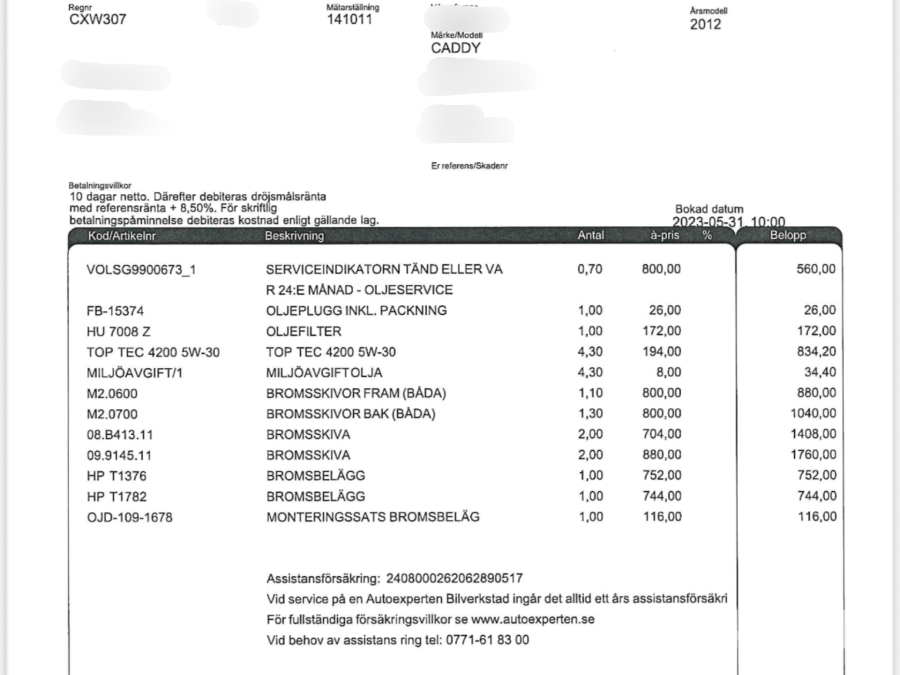 • Serie/chassinummer framgår