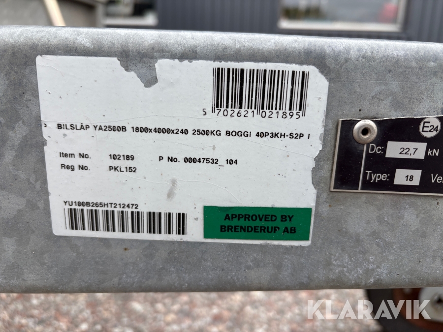 Personbilssläp Fogelsta YA2500B