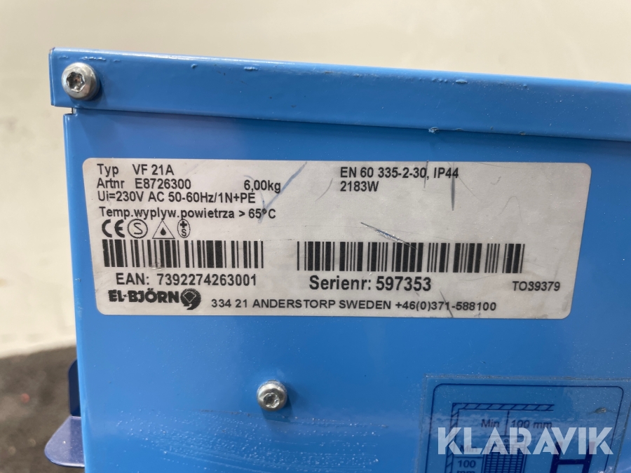 Varmluftsfläktar El-Björn VF 21 A