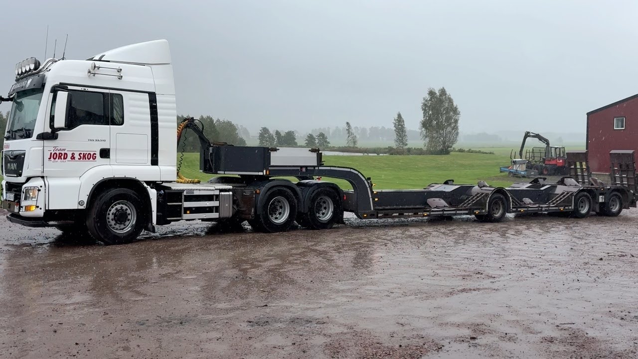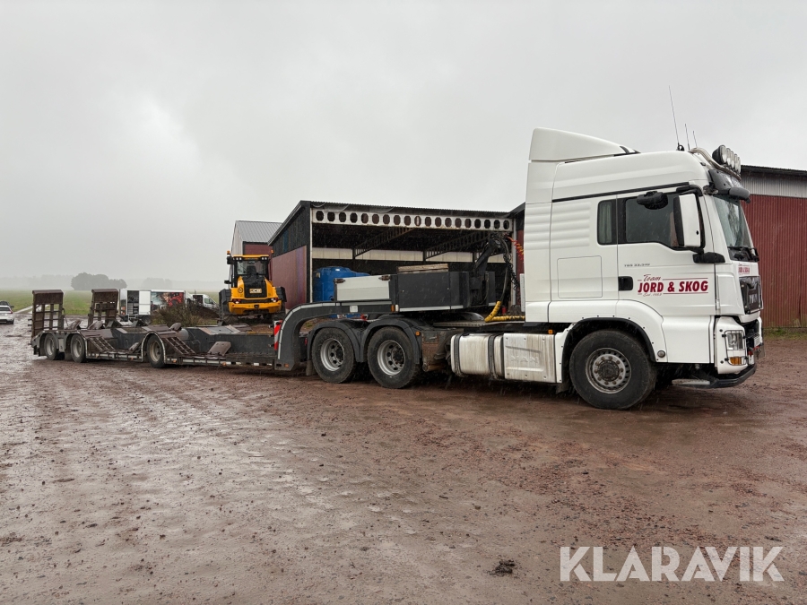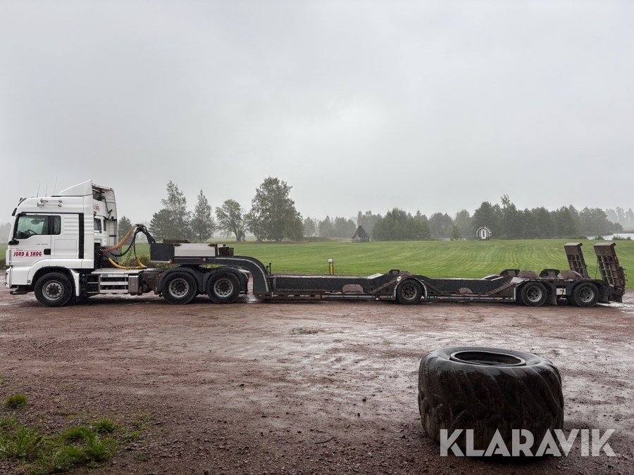 Timmerdragare MAN Gtx 33.510 6x6 med maskintrailer