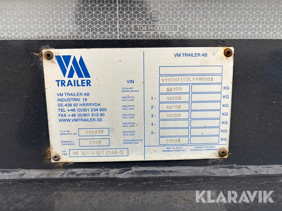 • Serie/chassinummer framgår