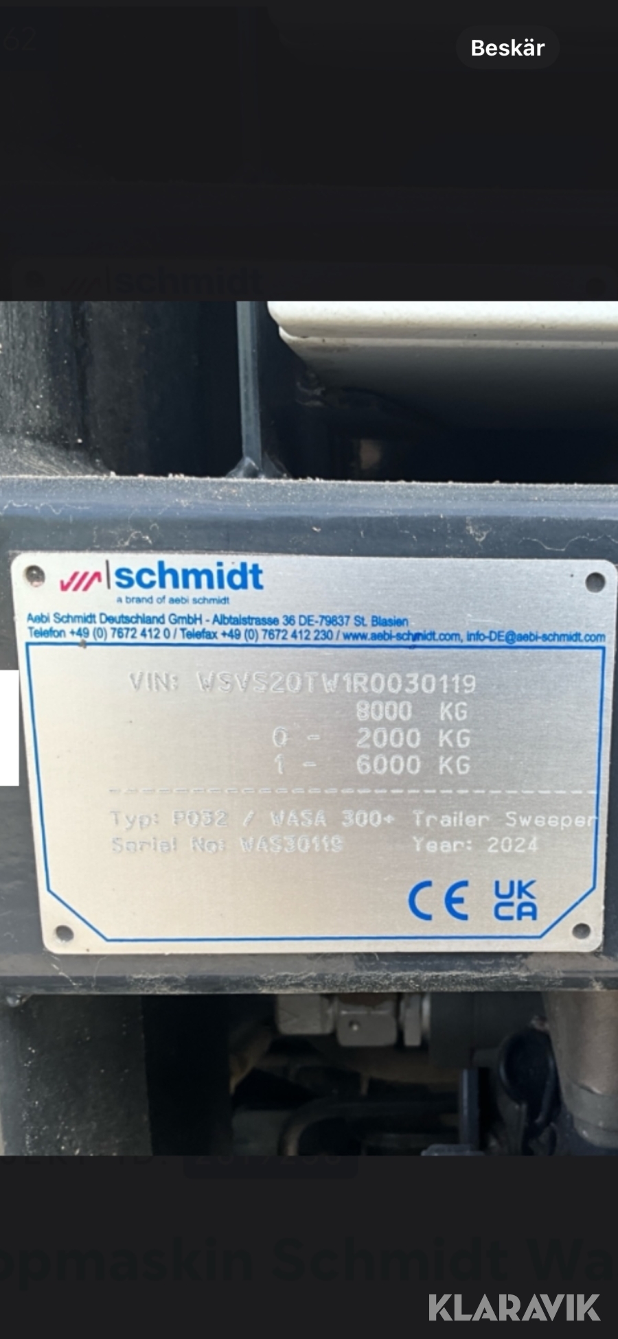• Serie/chassinummer framgår