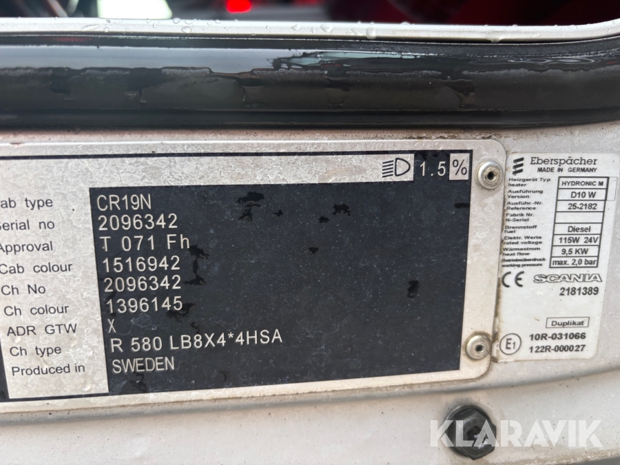 Lastväxlare Scania R580LB8X2*4HNB fullt plogutrustad Euro 6