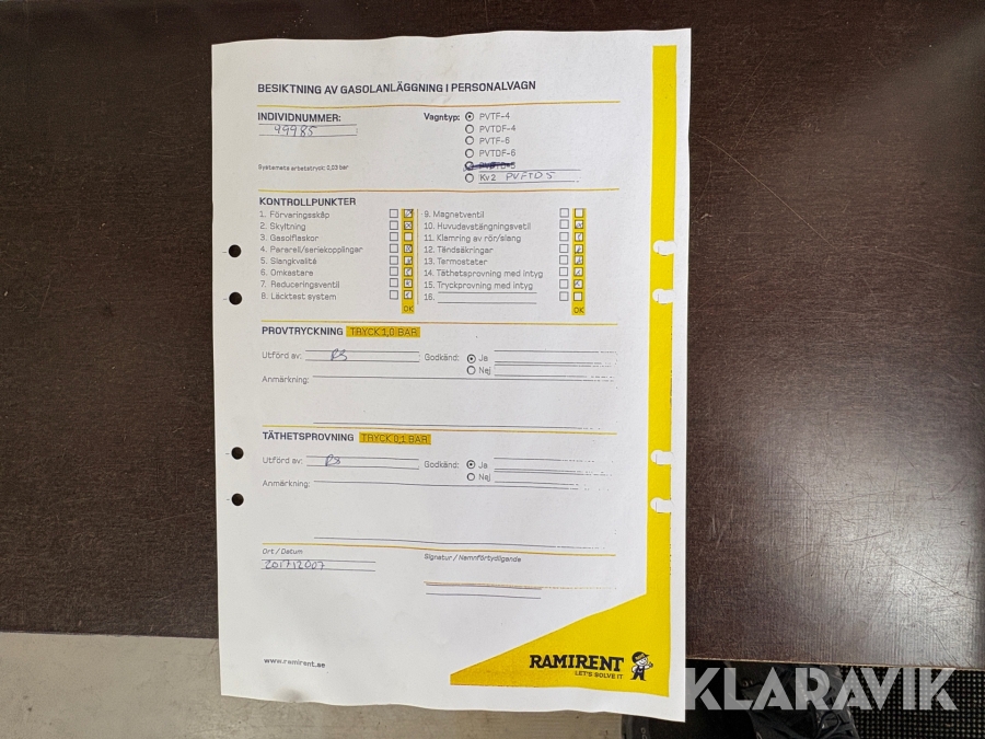• Serie/chassinummer framgår