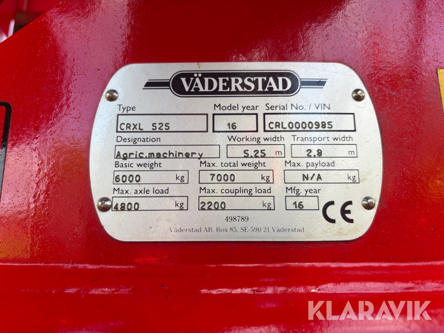 Tallriksredskap Väderstad Carrier XL 525