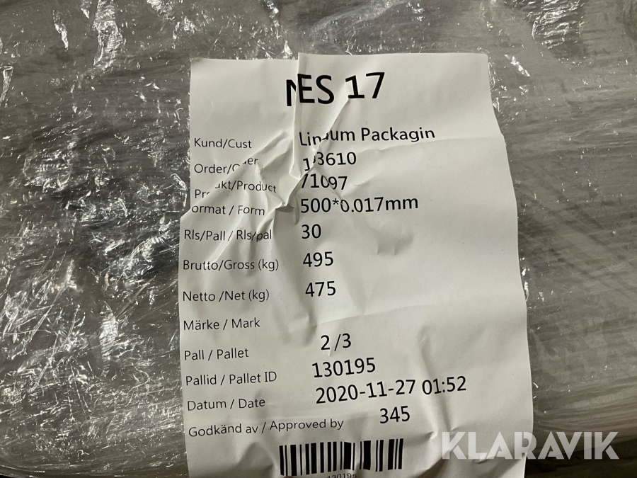 Sträckfilmsmaskin/Inplastare KPK 1500 ink 8 rullar sträckfilm