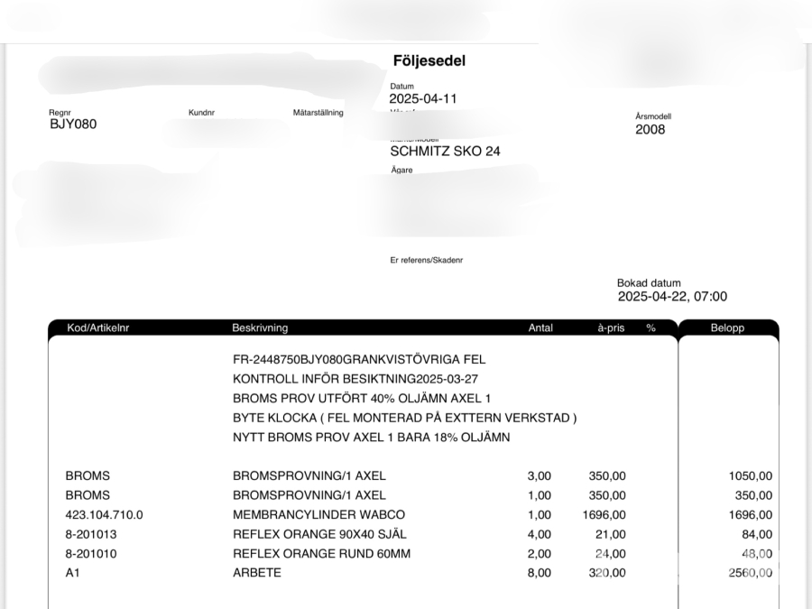• Serie/chassinummer framgår