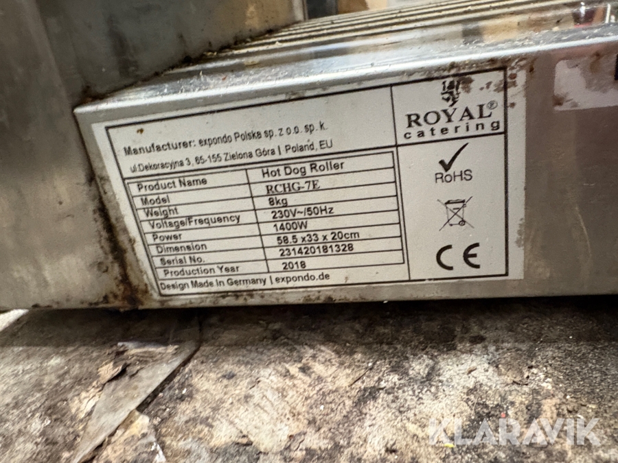 Korvgrill Royal Catering Hot Dog Roller