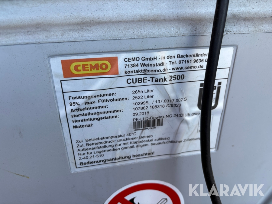 Dieseltank Cemo Cube tank 2500 liter