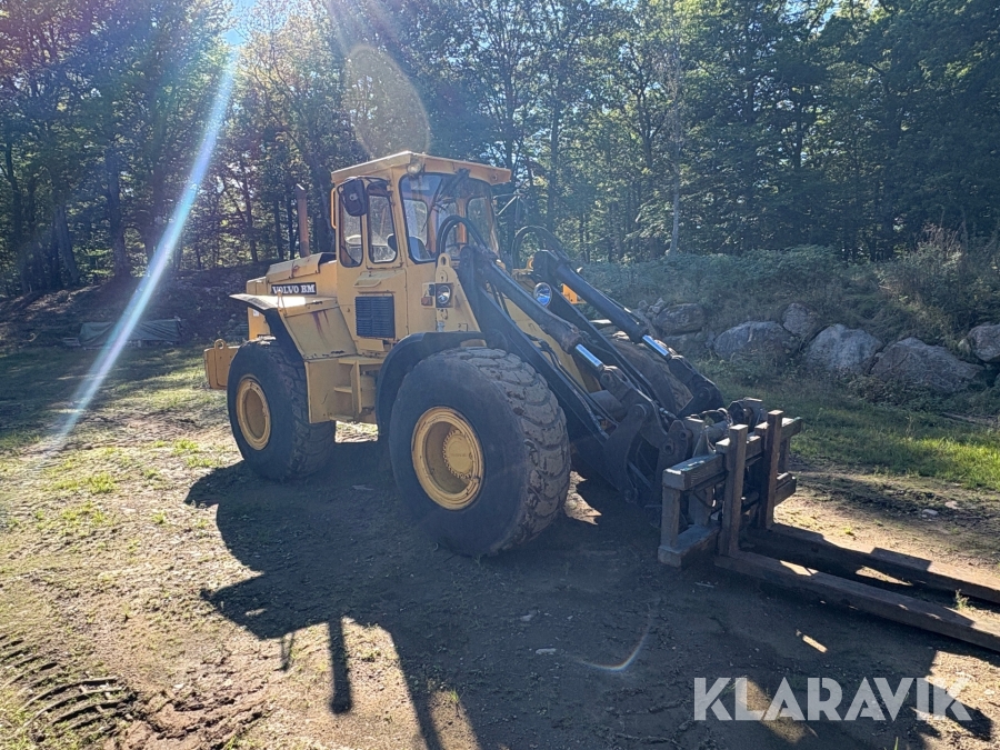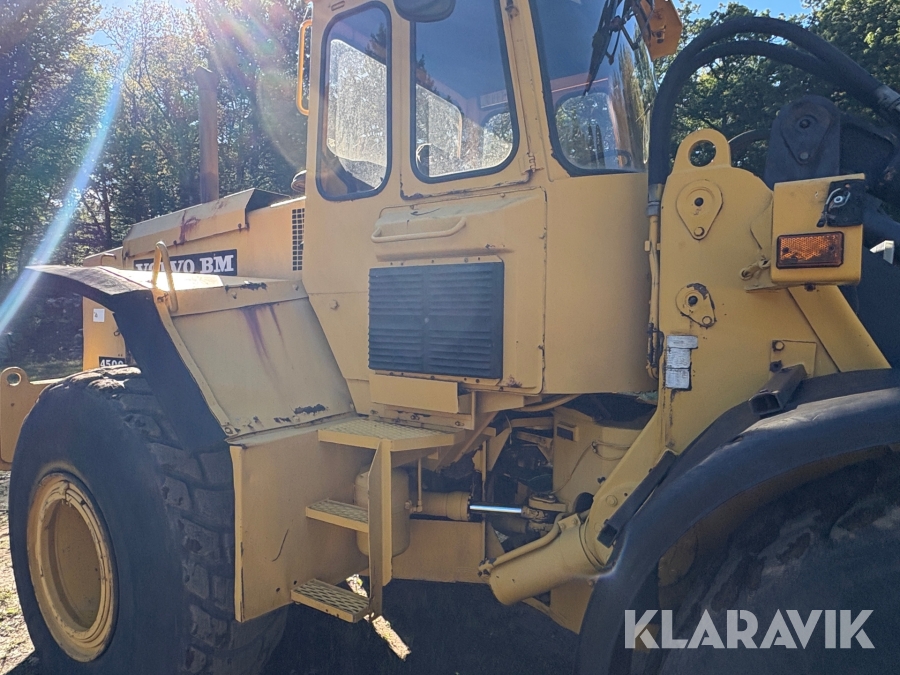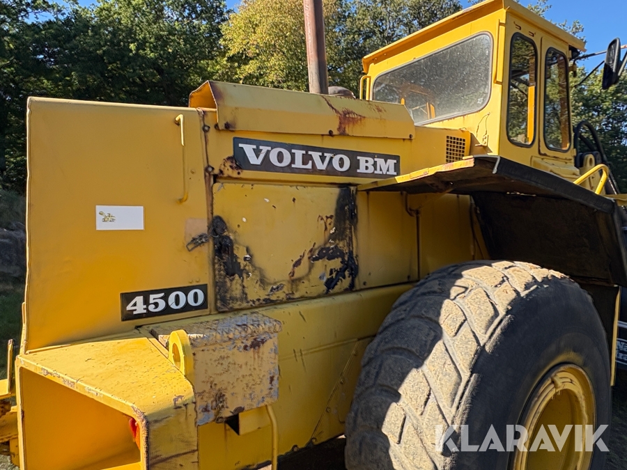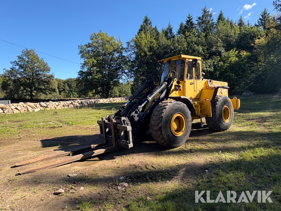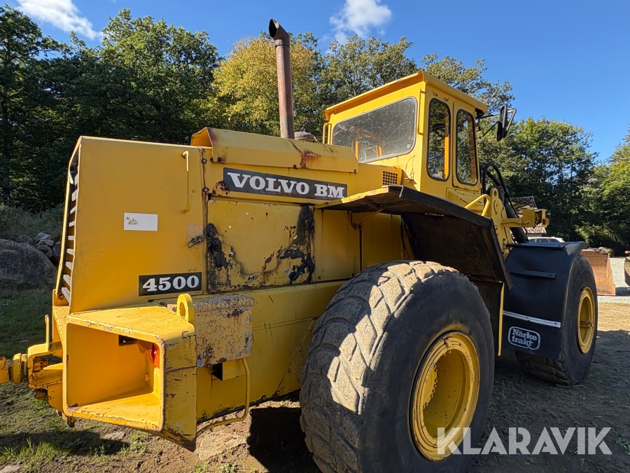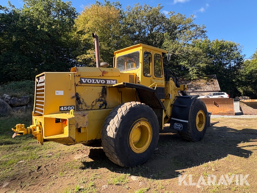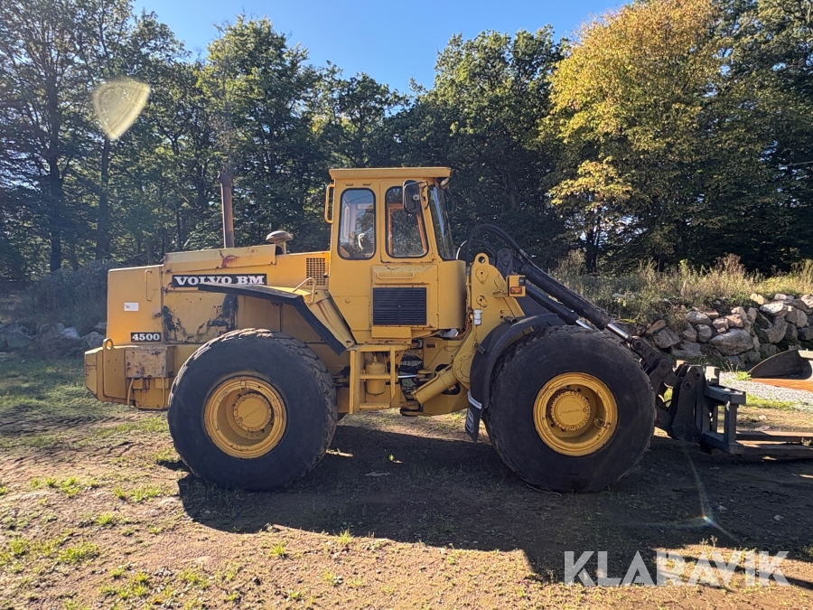 Hjullastare Volvo BM 4500 med hydrauliska gafflar, skopor och snöblad