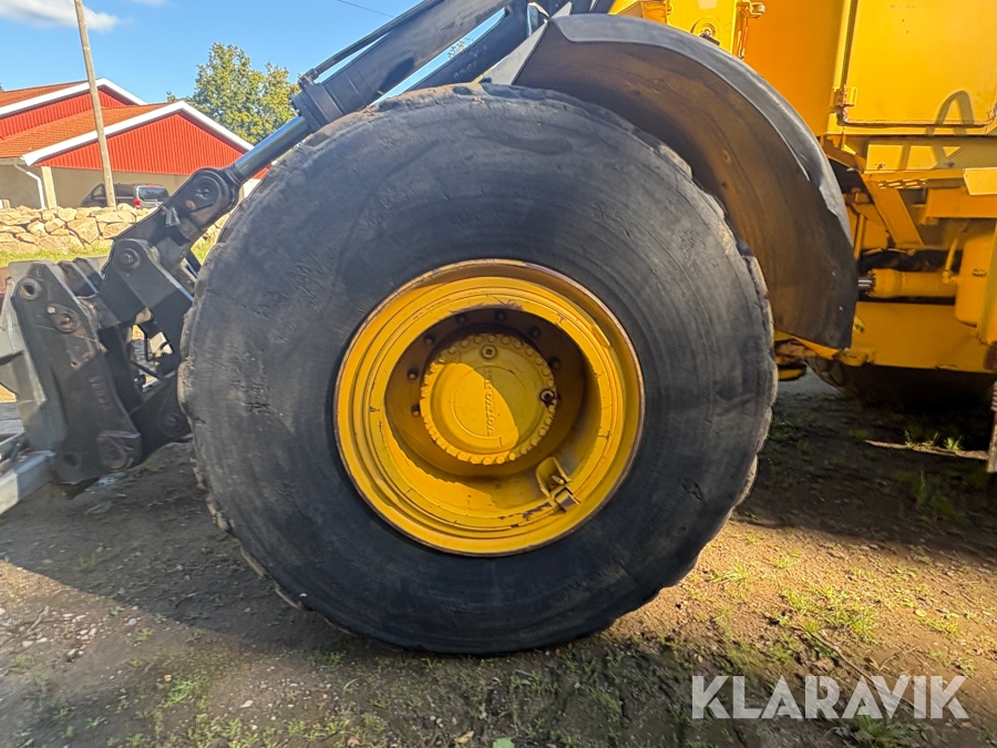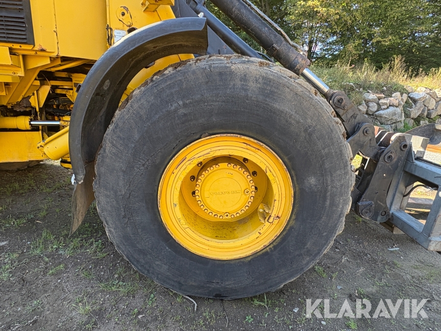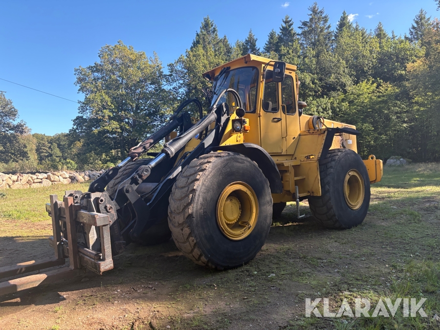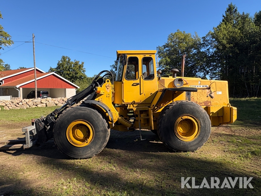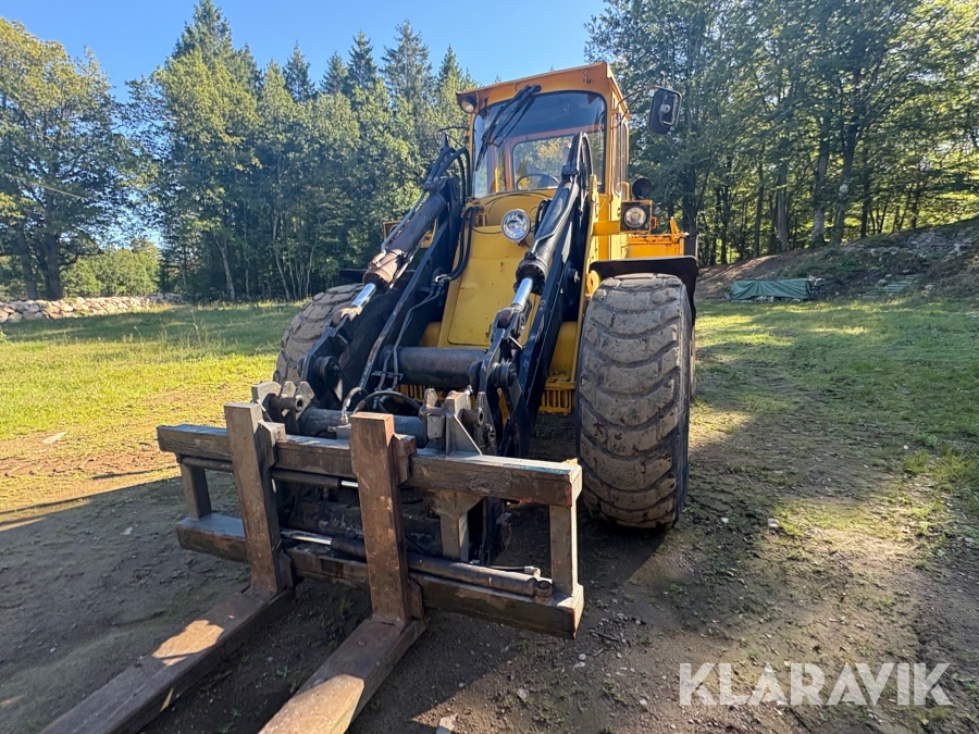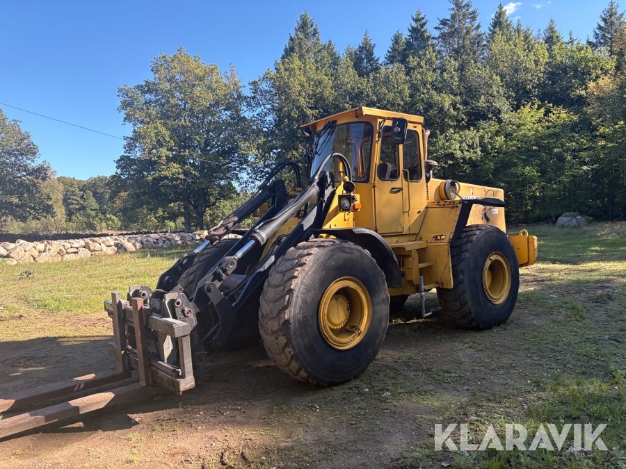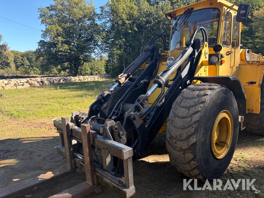 Hjullastare Volvo BM 4500 med hydrauliska gafflar, skopor och snöblad