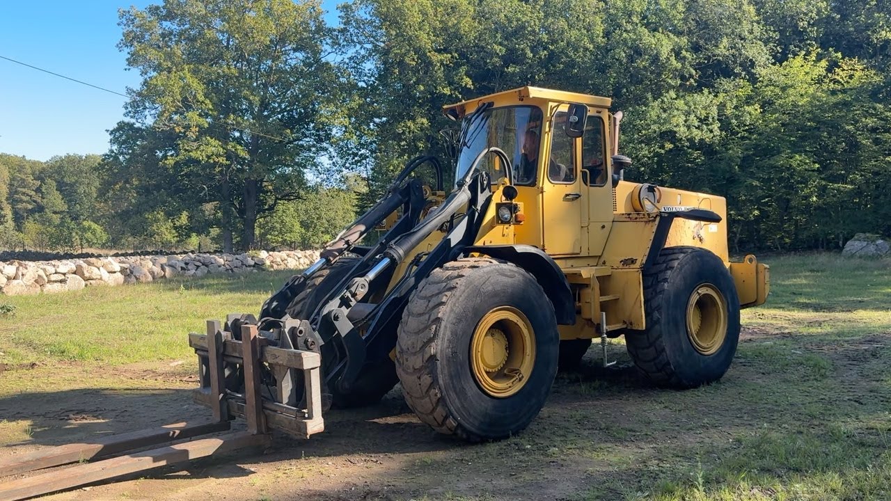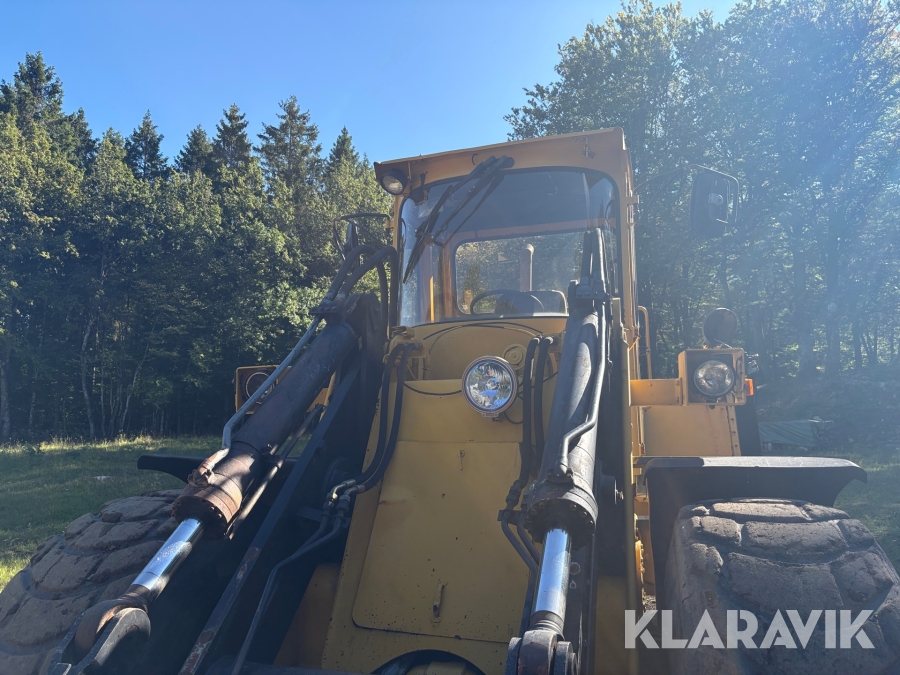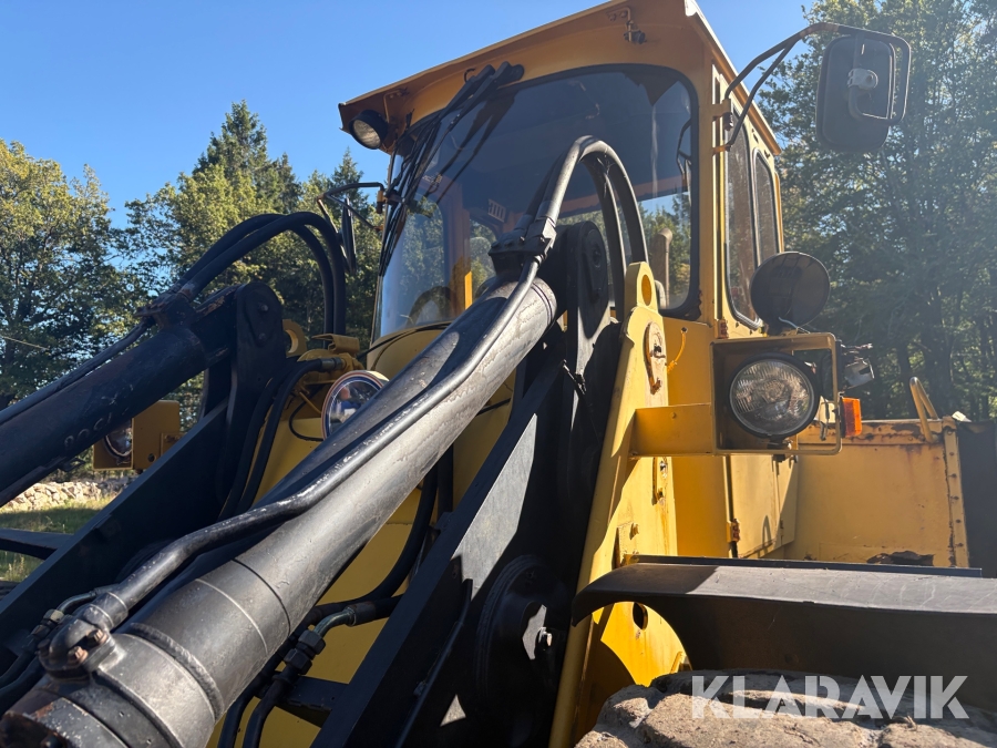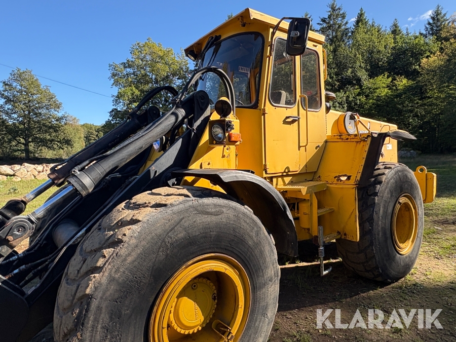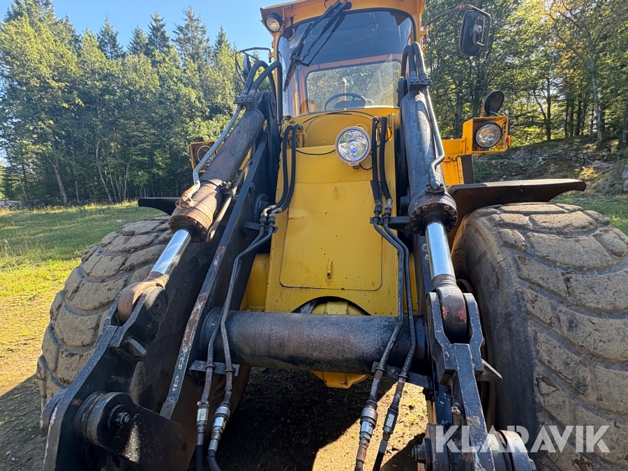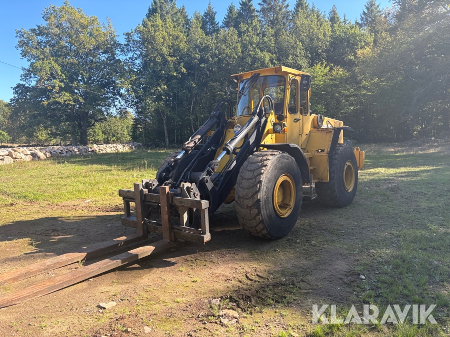 Hjullastare Volvo BM 4500 med hydrauliska gafflar, skopor och snöblad