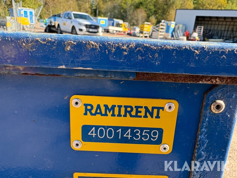 Pga platsbrist är det viktigt att du som köpare hämtar inom 12 dagar från auktionsavslut. Vid frågor om frakt kontakta trade@ramirent.se.
