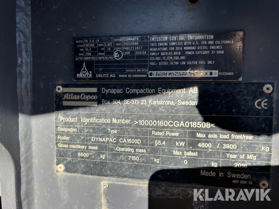 Envalsvält Atlas Copco Dynapac ca 1500 D