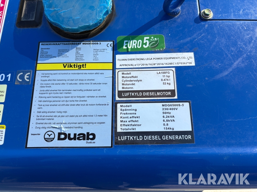 Generator/ elverk Duab MDG6500S-3