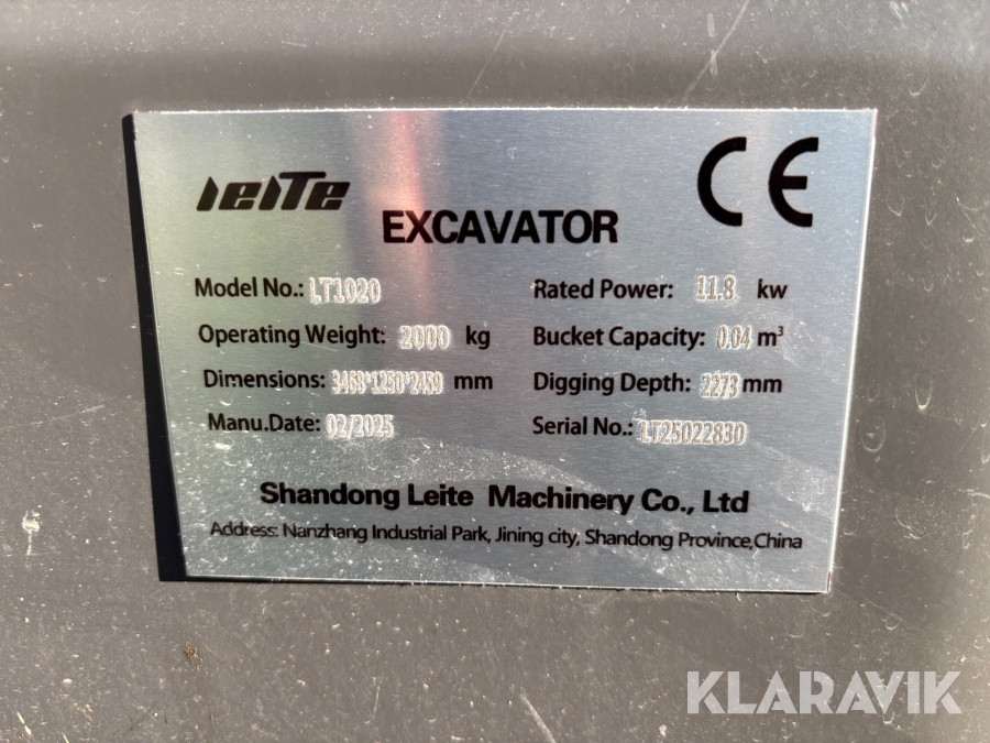 Minigrävare Shandong Leite LT1020 2025 med skopor & hammare