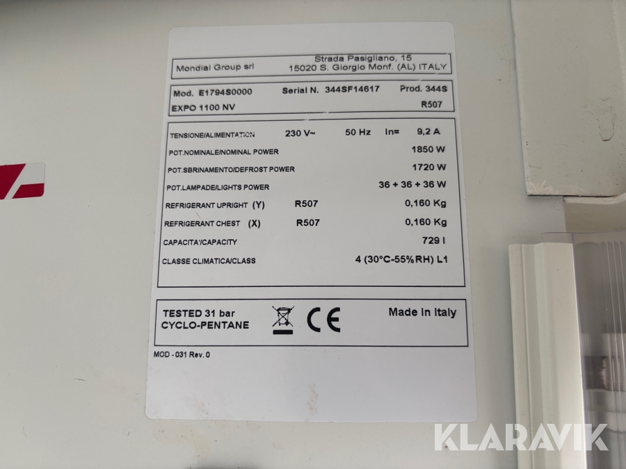 Displayfrys Mondial E1794S0000 med belysning