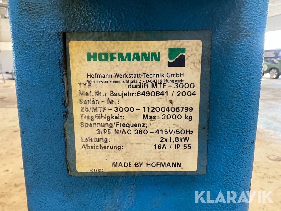 Tvåpelarlyft Hofman Duolift MTF 3000 nedmonterad