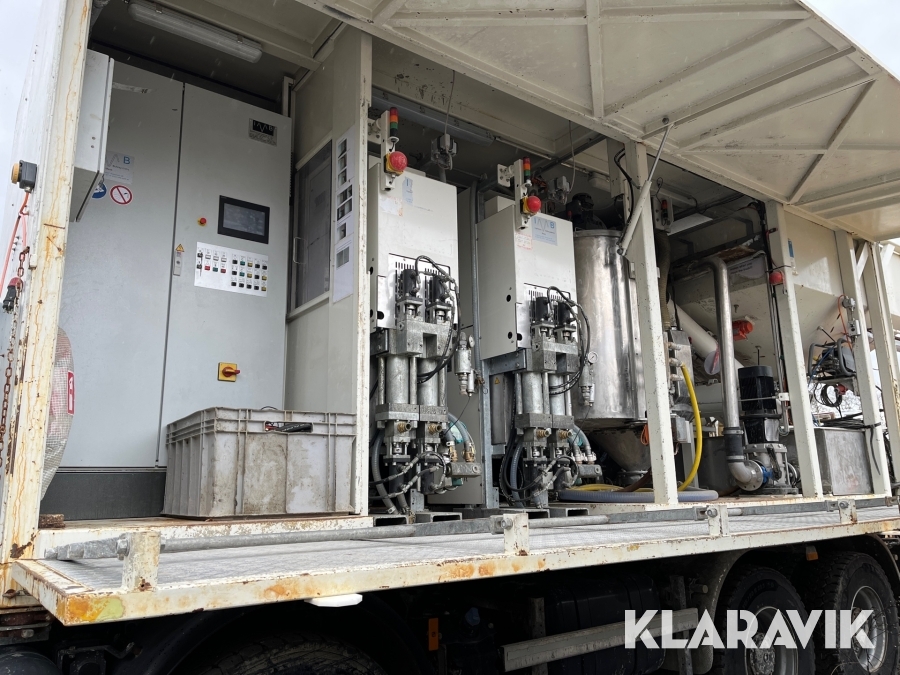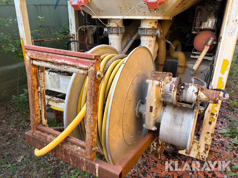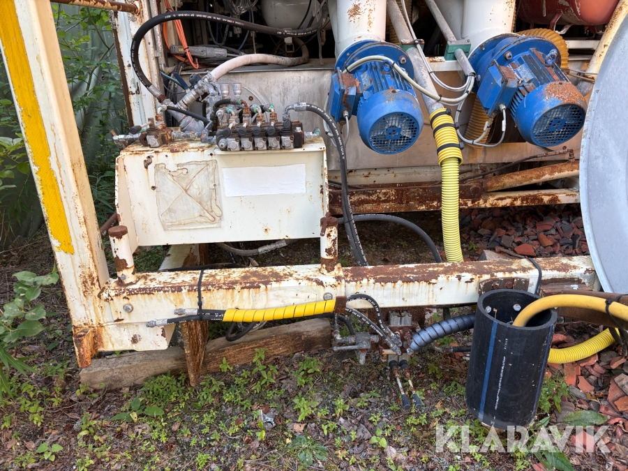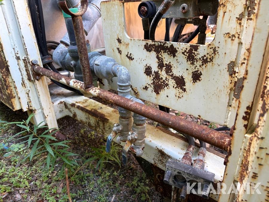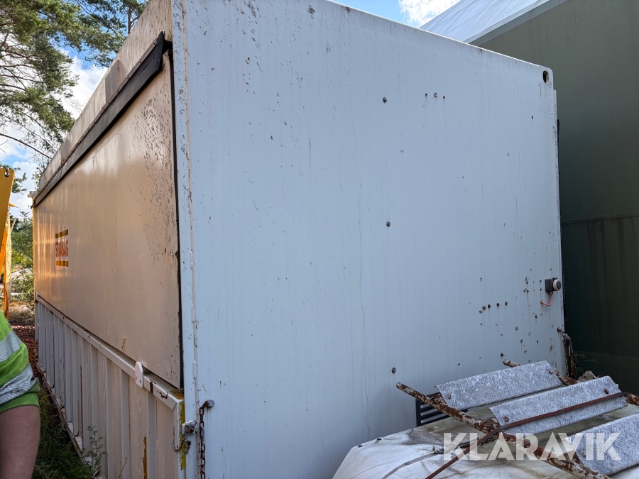 Efter som den inte är monterad på lastbil så saknas hydraulik pump att öppna sidorna på containern.