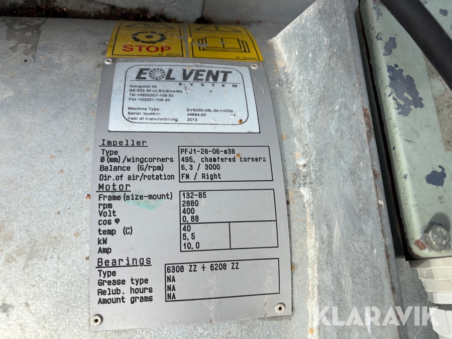 Tunnelfläkt Eolvent EVS050-28L-06-kW/2p