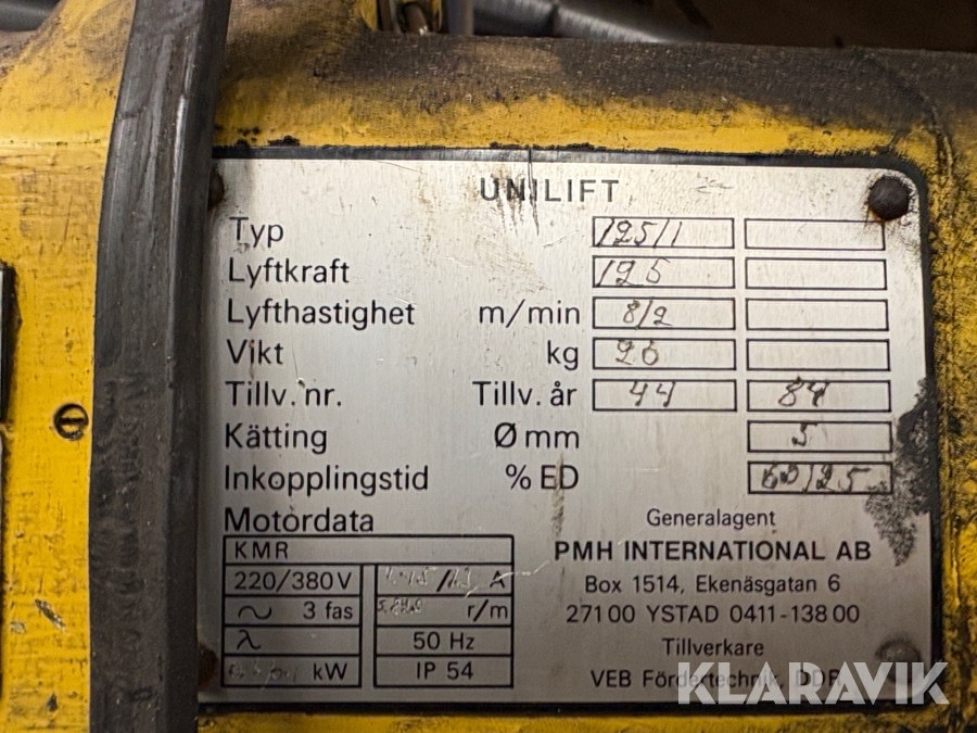 Boka frakt? Det finns ingen specifik information om frakt för just det här objektet, men om du skickar oss en förfrågan via vårt fraktformulär, så undersöker vi möjligheten. Paket, EU-pall eller större maskin? Klaravik har fraktavtal med Schenker och i de fall vi kan hjälpa till med frakt gäller det objekt som ryms i paket eller inom en EU-pall (upp till 120*80 cm och 990 kg). Det går att beställa frakt inom Sverige, dock inte till utlandet. Vid frakt på större maskiner rekommenderar vi gärna transportföretag som du kan kontakta.