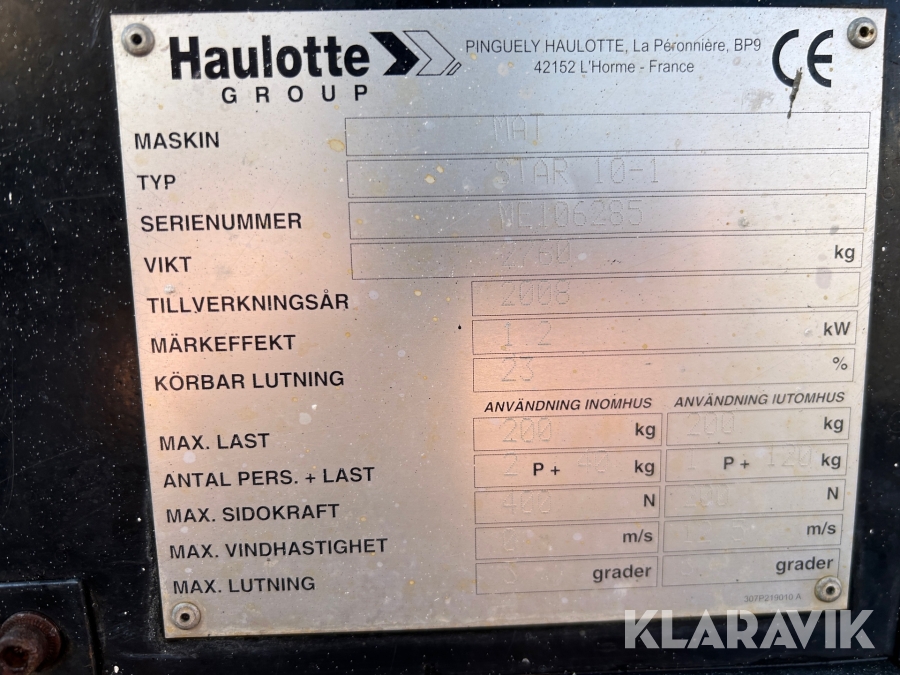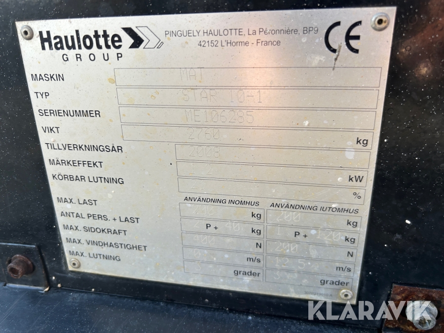 Pelarlift Haulotte Star 10