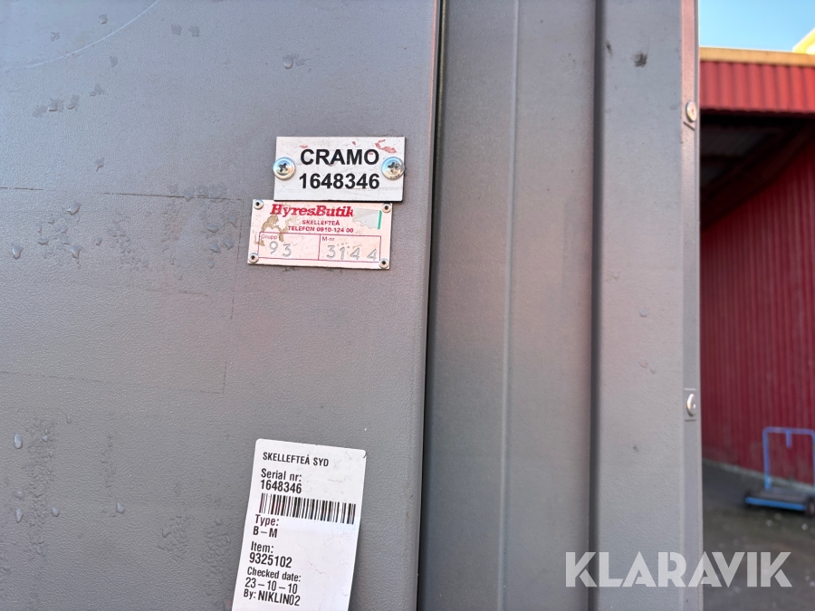 For sheds and containers (10 feet and larger), loading assistance can be purchased. Payment is made either by invoice or by card at the seller's location. The cost per lift is SEK 500 + VAT.