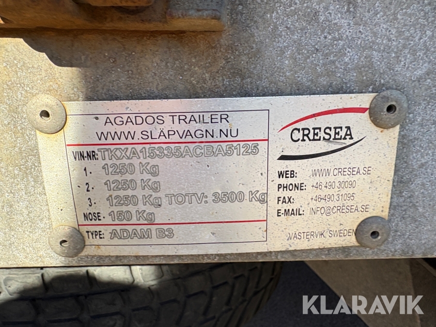 Maskinsläp Agados / WestBay Multitransport Adam B3 3,5ton tippbart