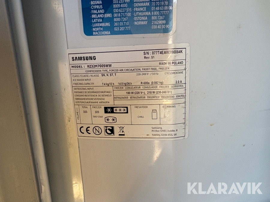Kyl och frys Samsung Frys RZ32M7005WW Kyl RR39M7010WW