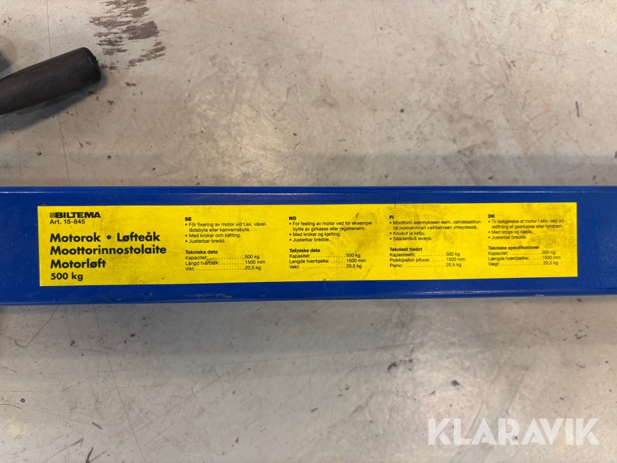 Motorlyft Biltema 500 kg