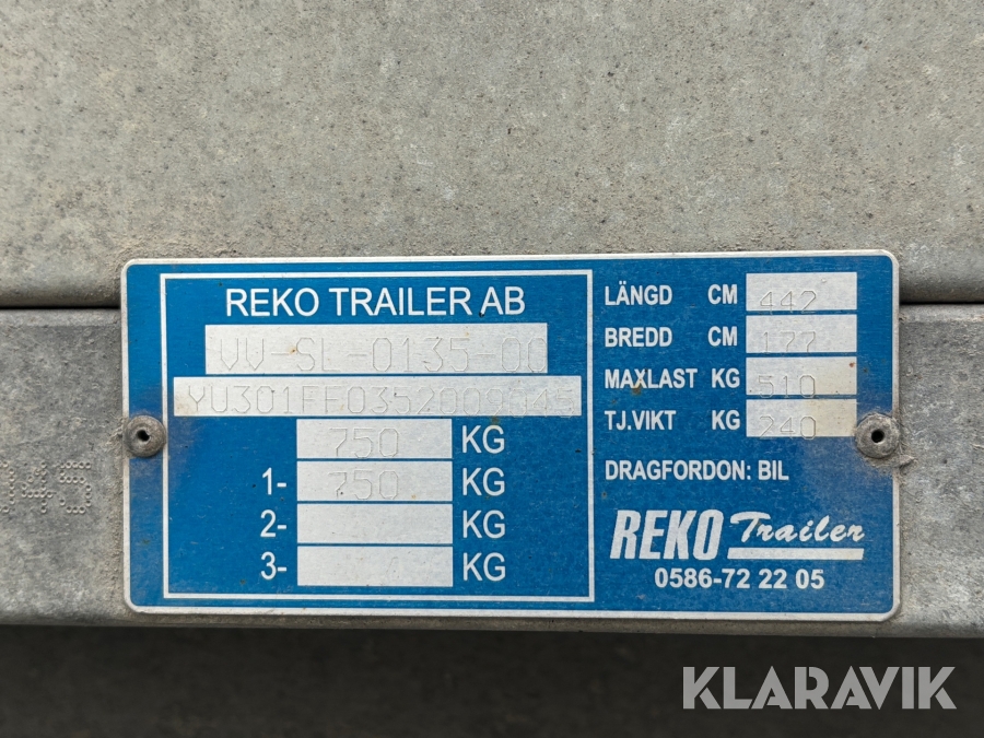 Personbilssläp med kåpa Rekotrailer
