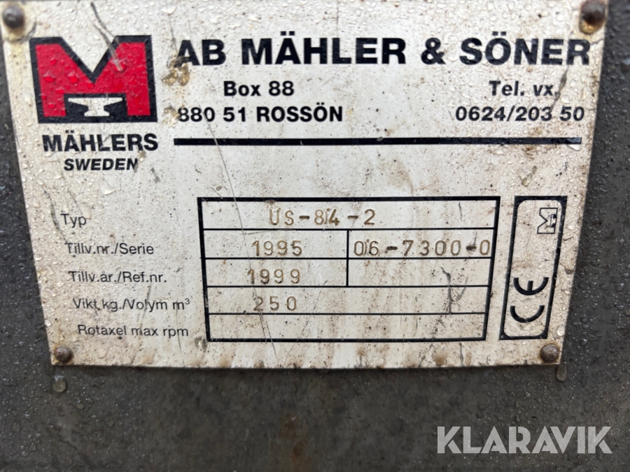 Boka frakt? Det finns ingen specifik information om frakt för just det här objektet, men om du skickar oss en förfrågan via vårt fraktformulär, så undersöker vi möjligheten. Paket, EU-pall eller större maskin? Klaravik har fraktavtal med Schenker och i de fall vi kan hjälpa till med frakt gäller det objekt som ryms i paket eller inom en EU-pall (upp till 120*80 cm och 990 kg). Det går att beställa frakt inom Sverige, dock inte till utlandet. Vid frakt på större maskiner rekommenderar vi gärna transportföretag som du kan kontakta.