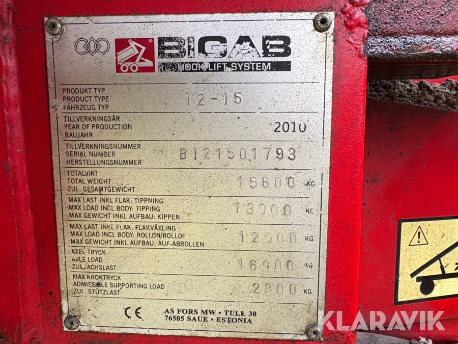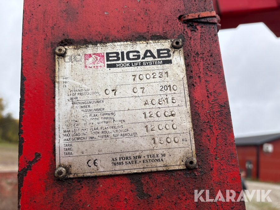 Växlarvagn/ skogsvagn Bigab 12 - 15 med kran och container