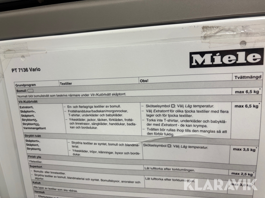 Torktumlare Miele Professional PT 7136 Vario 3st