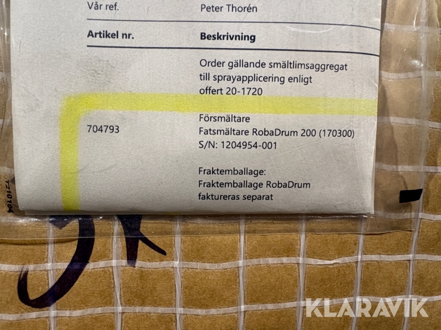 Boka frakt? Det finns ingen specifik information om frakt för just det här objektet, men om du skickar oss en förfrågan via vårt fraktformulär, så undersöker vi möjligheten. Paket, EU-pall eller större maskin? Klaravik har fraktavtal med Schenker och i de fall vi kan hjälpa till med frakt gäller det objekt som ryms i paket eller inom en EU-pall (upp till 120*80 cm och 990 kg). Det går att beställa frakt inom Sverige, dock inte till utlandet. Vid frakt på större maskiner rekommenderar vi gärna transportföretag som du kan kontakta.