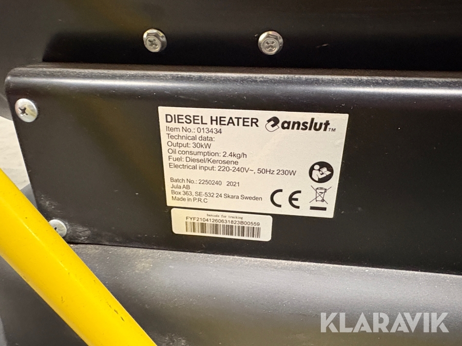 Boka frakt? Det finns ingen specifik information om frakt för just det här objektet, men om du skickar oss en förfrågan via vårt fraktformulär, så undersöker vi möjligheten. Paket, EU-pall eller större maskin? Klaravik har fraktavtal med Schenker och i de fall vi kan hjälpa till med frakt gäller det objekt som ryms i paket eller inom en EU-pall (upp till 120*80 cm och 990 kg). Det går att beställa frakt inom Sverige, dock inte till utlandet. Vid frakt på större maskiner rekommenderar vi gärna transportföretag som du kan kontakta.