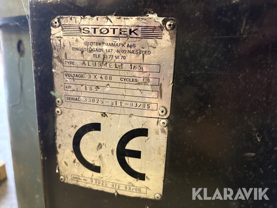 Smältugn Støtek Alusmelt 165 med styrskåp och tillbehör