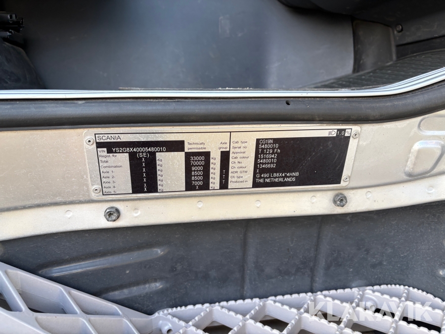 Lastväxlare Scania G490 plogutrustad