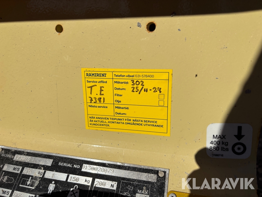 Läs om metodikenPga platsbrist är det viktigt att du som köpare hämtar inom 12 dagar från auktionsavslut. Vid frågor om frakt kontakta trade@ramirent.se.