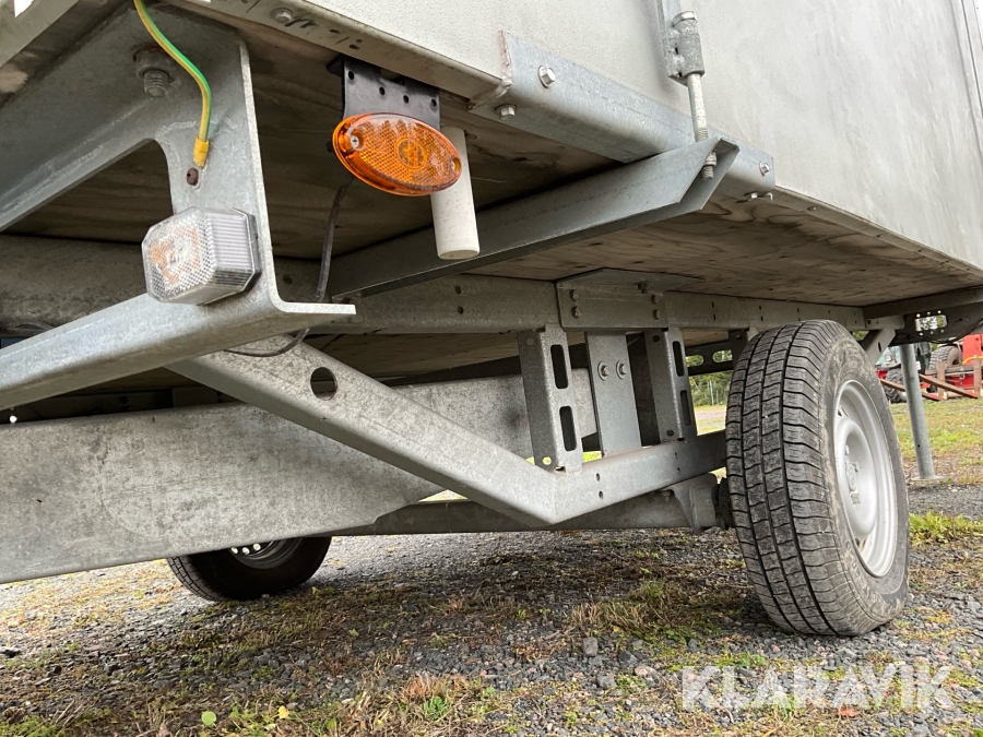 For sheds and containers (10 feet and larger), loading assistance can be purchased. Payment is made either by invoice or by card at the seller's location. The cost per lift is SEK 500 + VAT.