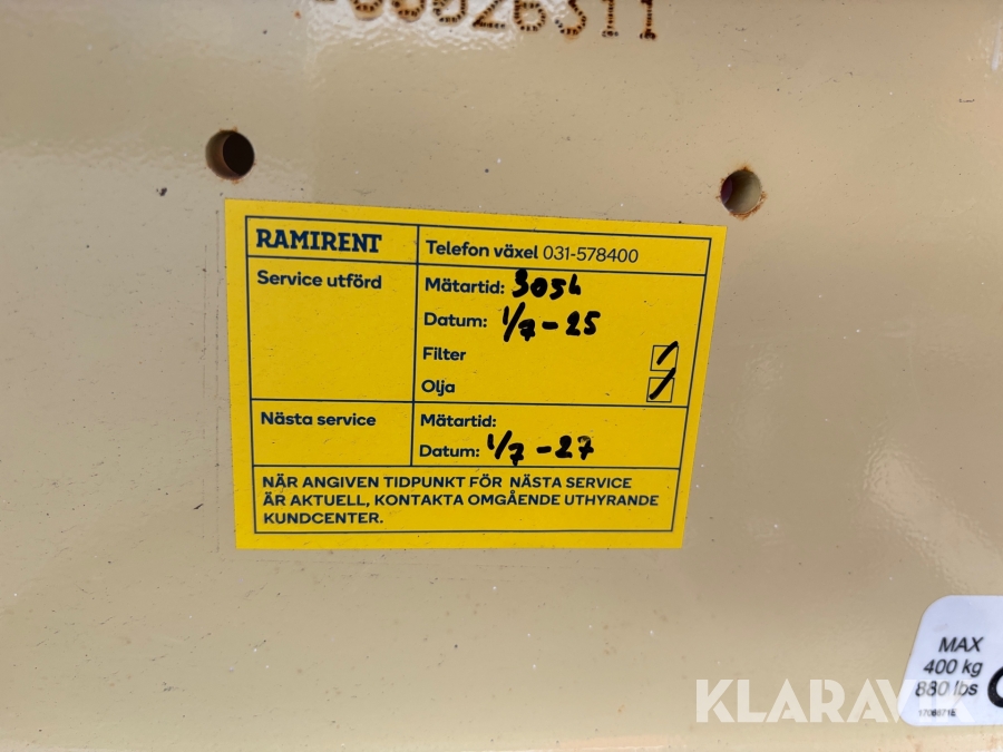 Läs om metodikenPga platsbrist är det viktigt att du som köpare hämtar inom 12 dagar från auktionsavslut. Vid frågor om frakt kontakta trade@ramirent.se.