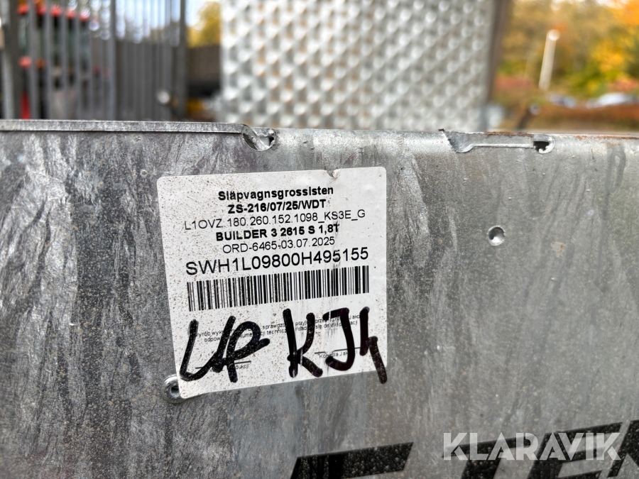 Personbilssläp Maskinsläp Temared Builder 3 2615 S 1.8T