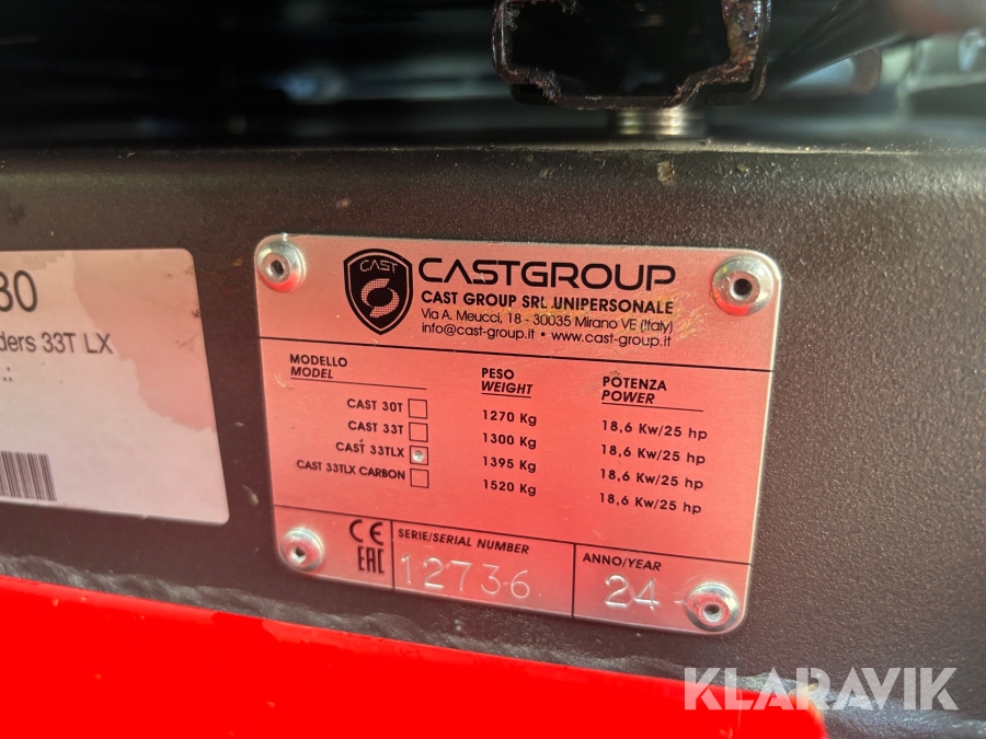 Redskapsbärare Castloaders 33T LX med vikplog
